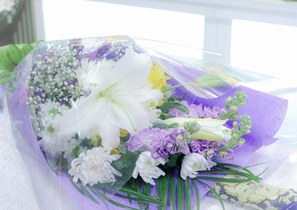 斎場へ移動する花は、倒れにくい形だと安心です。火のそばと直射は避けます。